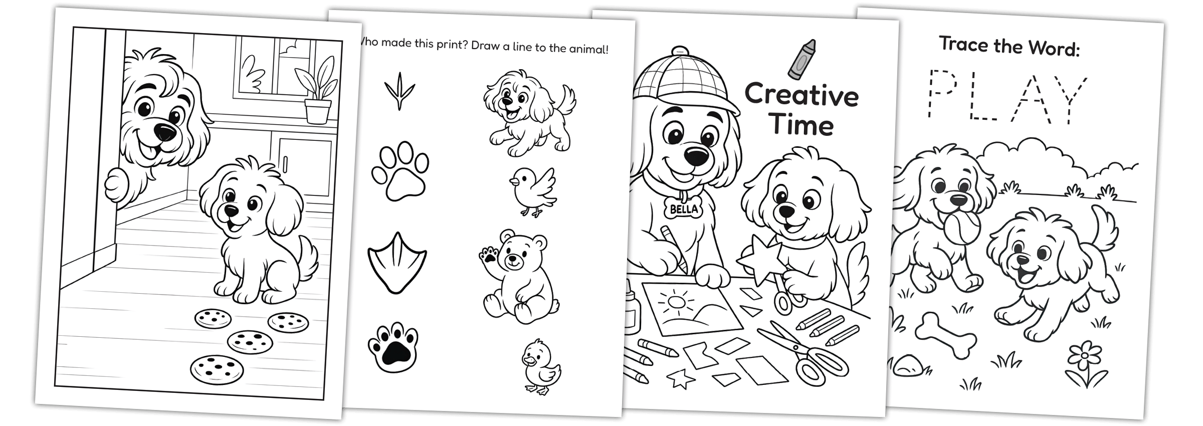 With over 20 engaging activities, this activity book is ideal for preschoolers and early elementary learners — especially kids who love puppies, puzzles, and coloring!